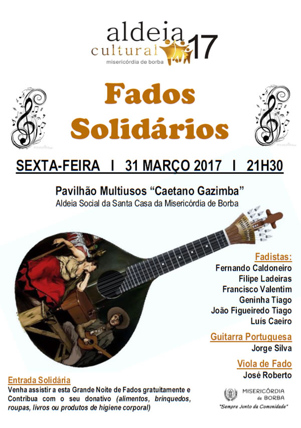 Noite de Fados Solidários no Pavilhão Multiusos da Aldeia Social, sexta-feira 31 de março de 2017 pelas 21H30